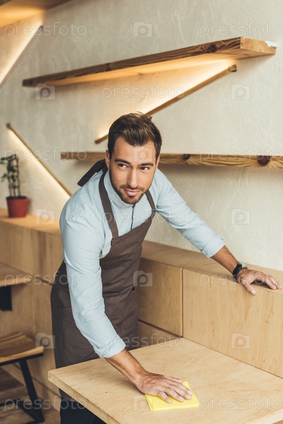Портрет молодого работника в кафе