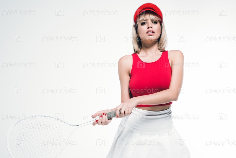 Портрет стильной женщины с теннисной ракеткой
