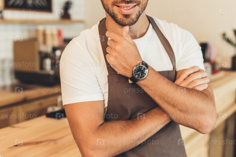 Бариста в фартуке в кафе