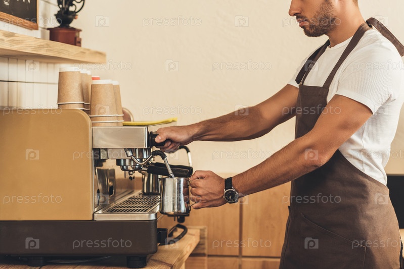 Приготовления кофе с помощью кофеварки в кафе