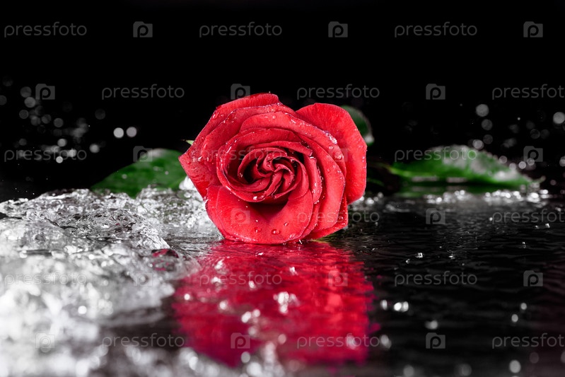 Одна красная роза с каплями воды