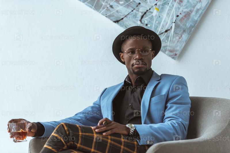 Пить виски, сидя в кресле в современном офисе