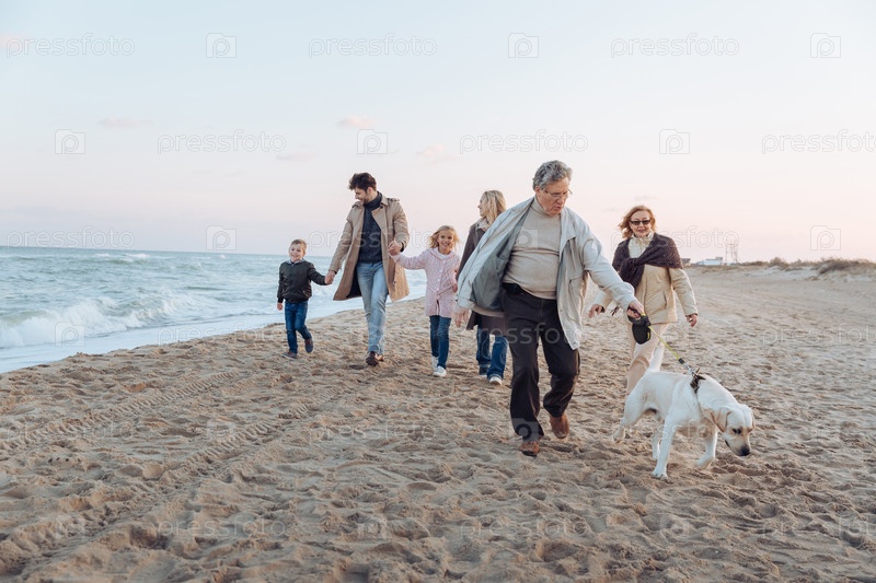 Прогулки с собакой на пляже на берегу моря