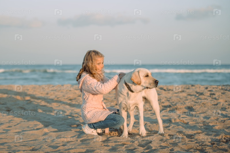 Ребенок с собакой на пляже