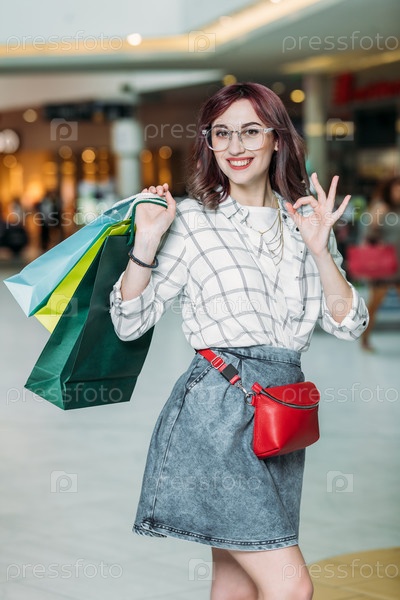 Счастливая молодая женщина с сумками