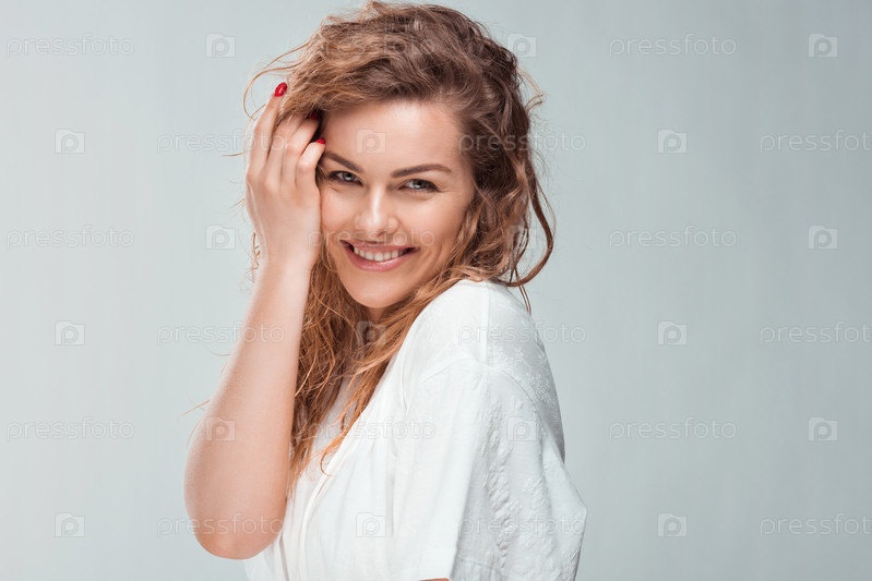 Чувственная женщина в белом халате