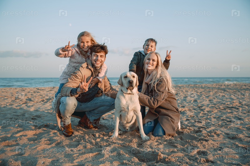 Большая семья на берегу моря