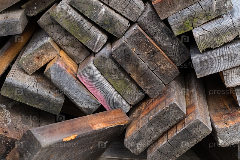 Куча старых выветренных коричневых досок