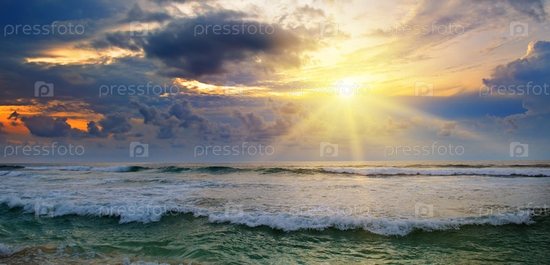 Пляж, океан и восход солнца