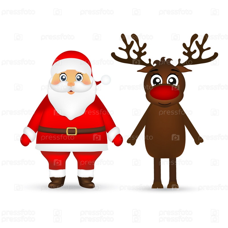 Санта-Клаус и олень на белом фоне