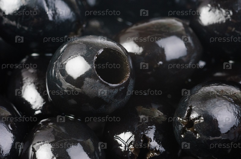 Черные оливки крупным планом, фон