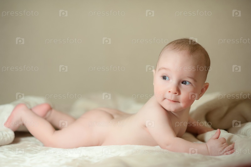 Маленький мальчик на постели