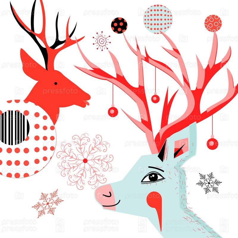 Новогодняя открытка с портретами оленей