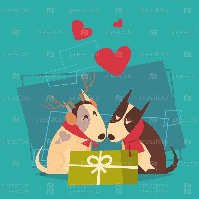 Пара собак с подарком