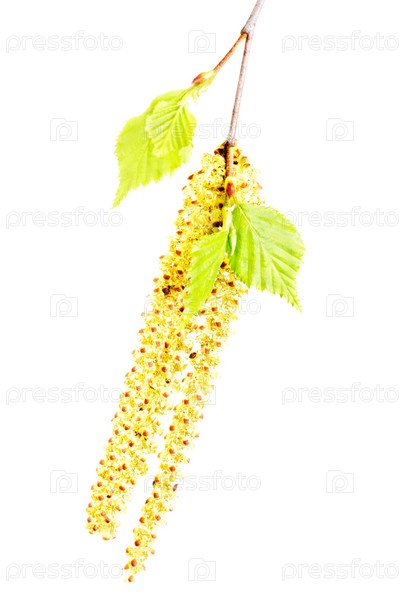 Ветка весенней березы на белом фоне