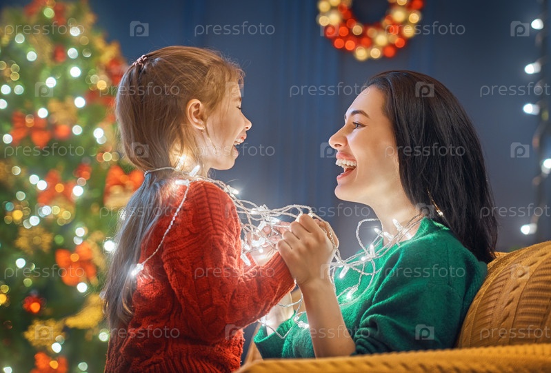 Мама и дочь возле елки