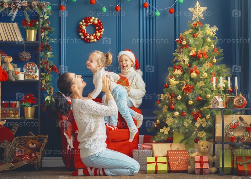 Семья возле елки