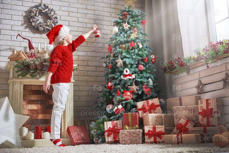 Девочка украшает елку