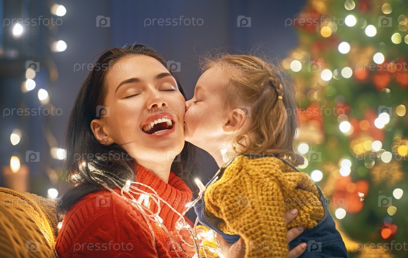 Мама и дочь возле елки