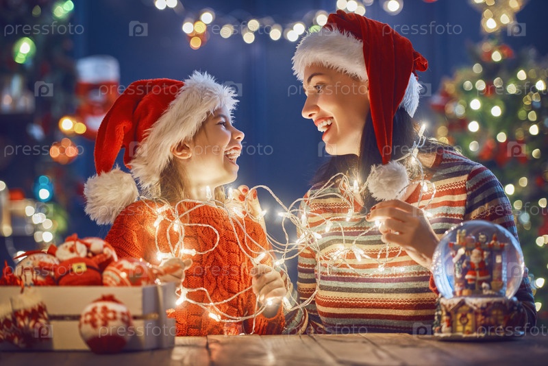 Мама и дочь возле елки