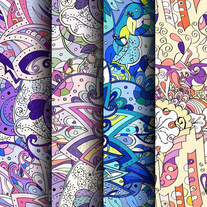 Набор ажурных красочных бесшовных узоров