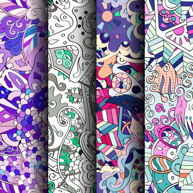 Набор ажурных красочных бесшовных узоров