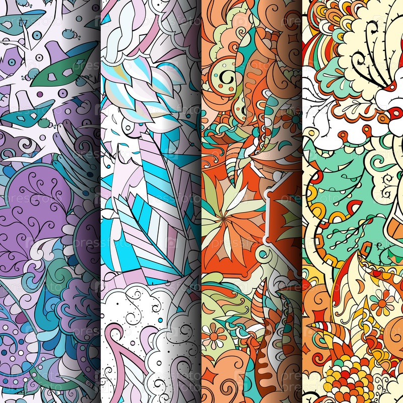 Набор ажурных красочных бесшовных узоров