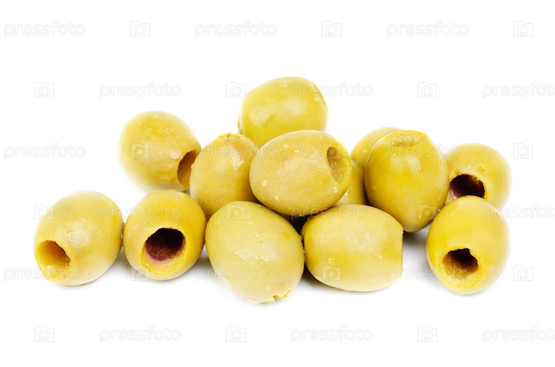 Оливки без косточек на белом фоне