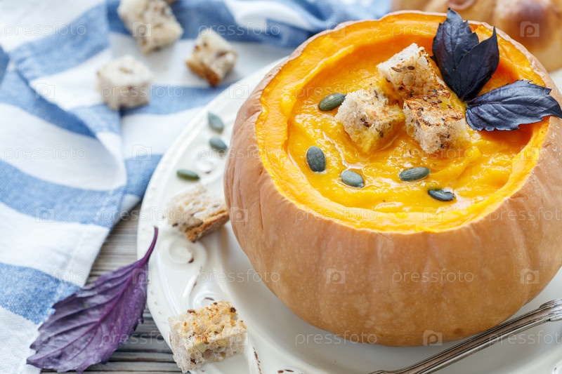 Тыквенный суп с гренками в тыкве