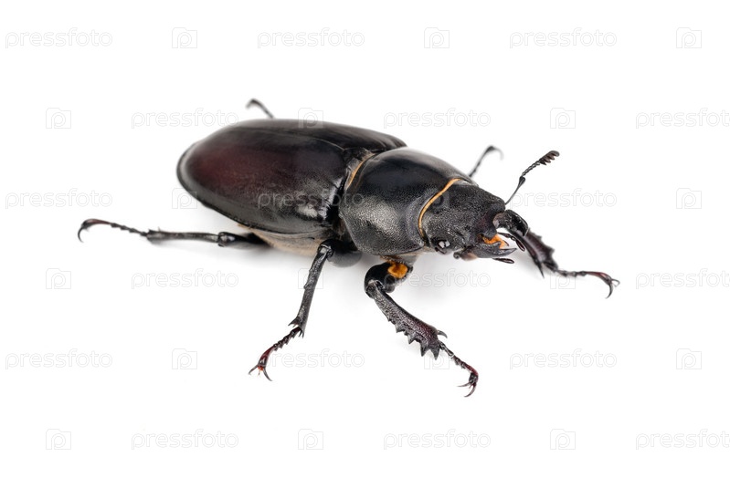 Самка жука-оленя на белом фоне