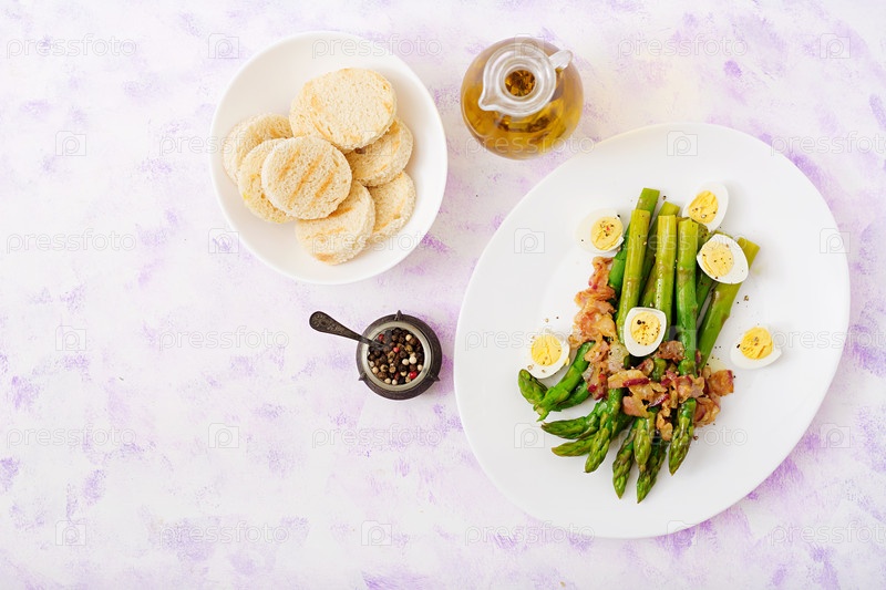 Молодые побеги спаржи с ветчиной и перепелиными яйцами