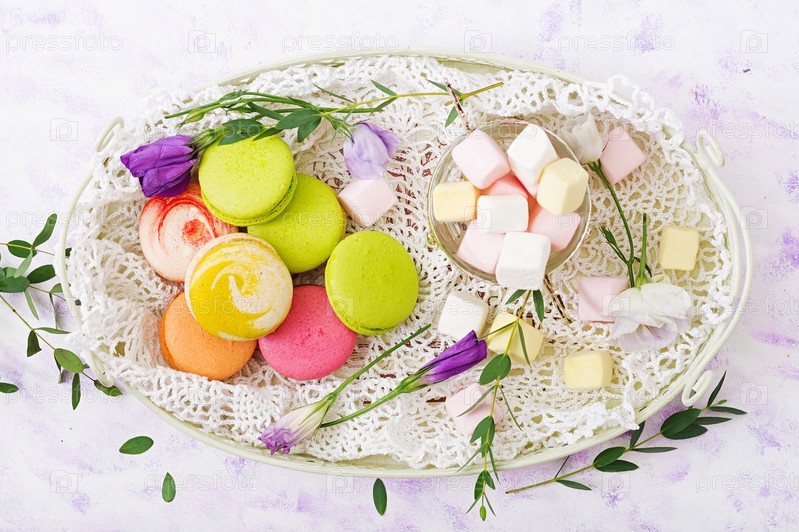 Красочные миндальное печенье и зефир
