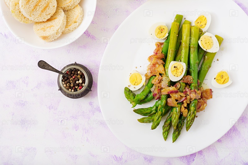 Молодые побеги спаржи с ветчиной и перепелиными яйцами