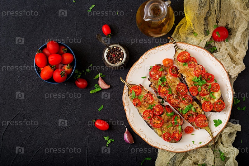Запеченные баклажаны с сыром моцарелла и помидорами с итальянскими травами