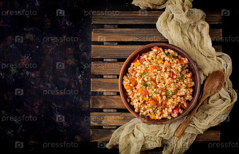 Вегетарианская рассыпчатая перловая каша с овощами