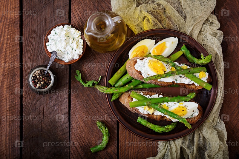Молодые побеги спаржи с ветчиной и яйцом