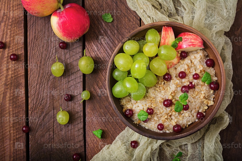 Вкусная и здоровая овсяная каша с виноградом, орехами и яблоками