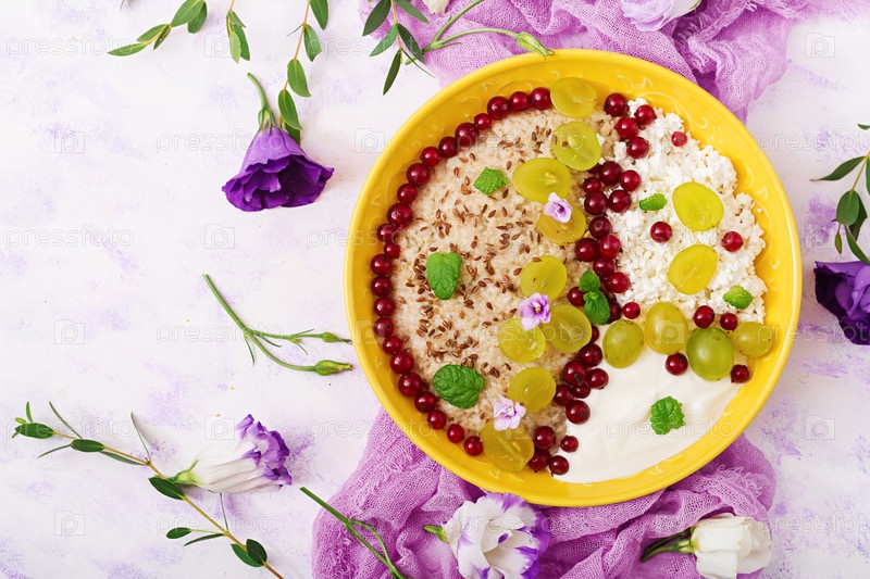 Вкусная и здоровая овсяная с виноградом, йогуртом и творогом