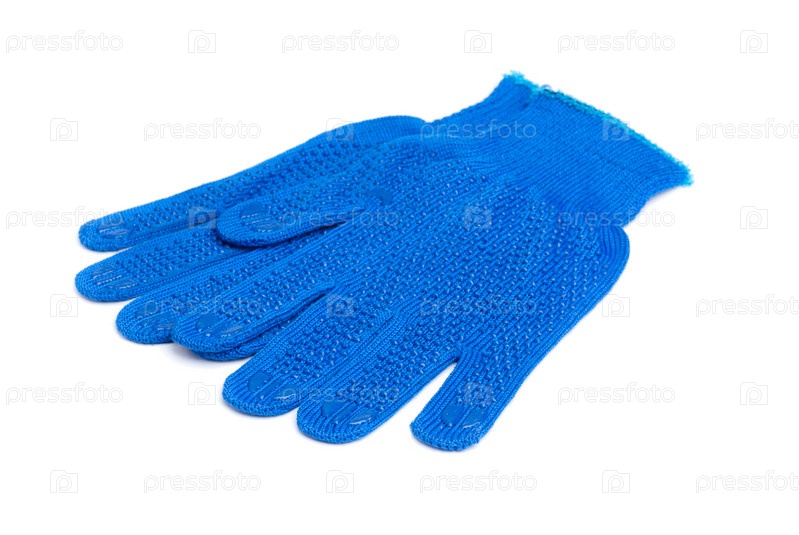 Рабочие перчатки синего цвета на белом фоне