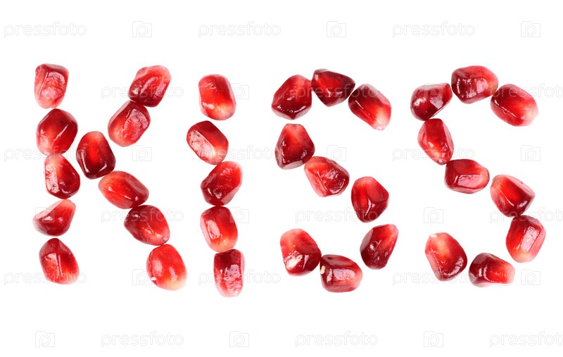 Слово 'kiss', выложенное семенами граната
