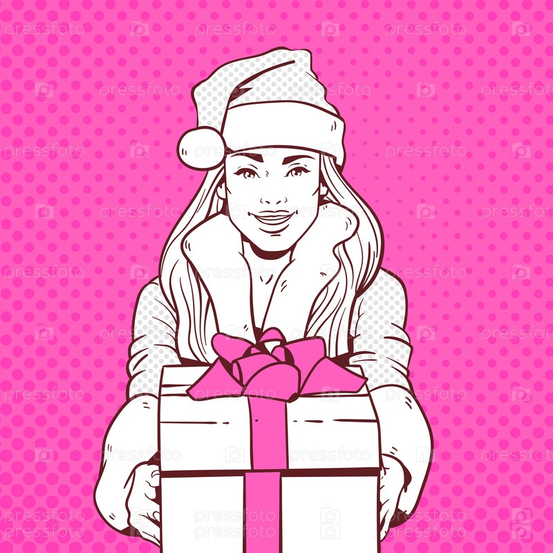 Красивая девушка в костюме Санты с подарком