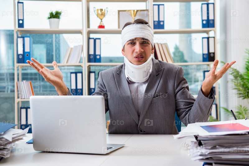 Раненый бизнесмен, работающий в офисе