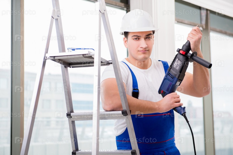 Ремонтник с дрелью в мастерском