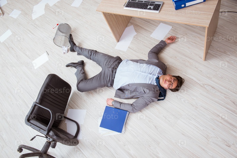 Бизнесмен мертвый на полу офиса