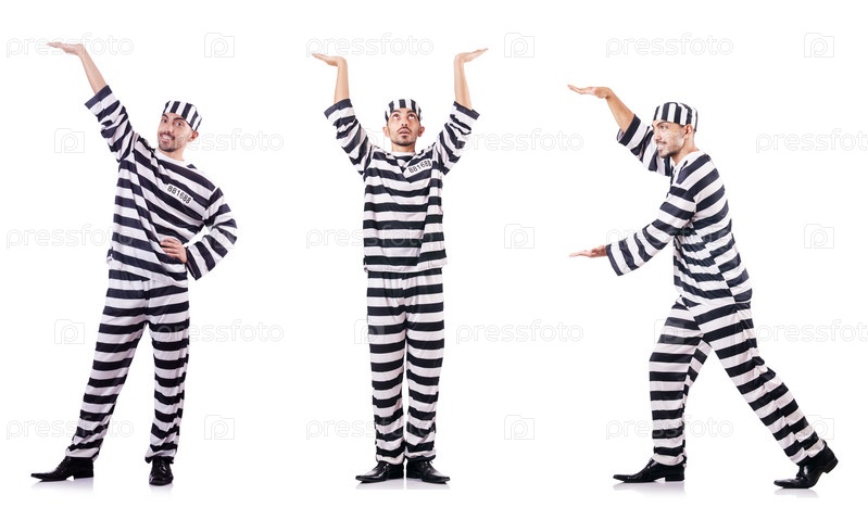 Осужденный преступник в полосатой форме
