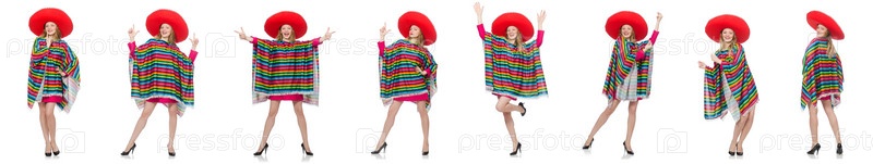 Красивая девушка в мексиканском пончо