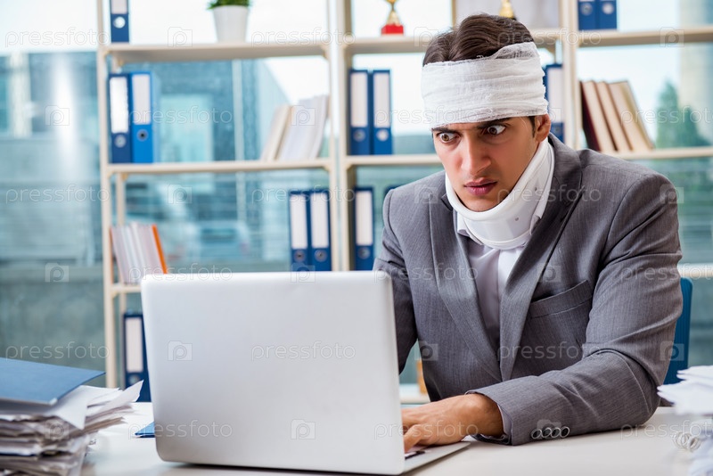 Раненый бизнесмен, работающий в офисе