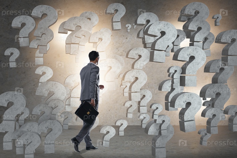 Бизнесмен сталкиваются с вопросами в бизнесе