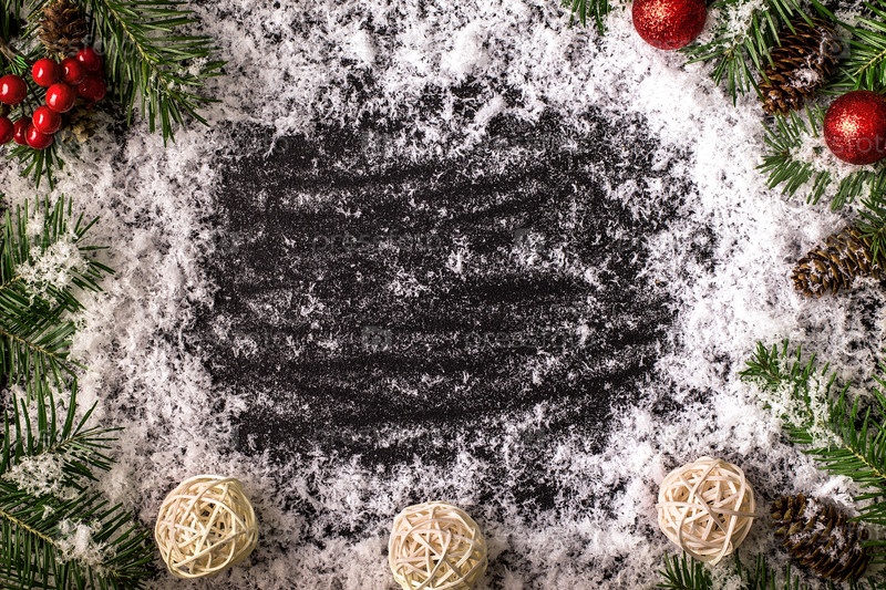 Новогодняя рамка со снегом на черном фоне