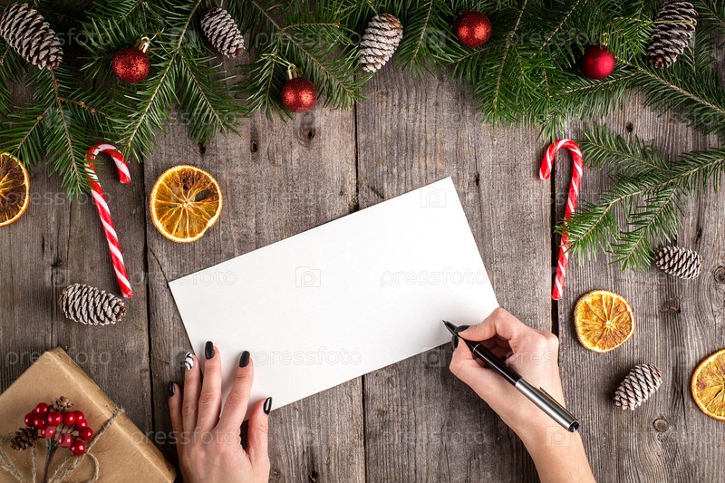 Письмо Деду Морозу на деревянном фоне